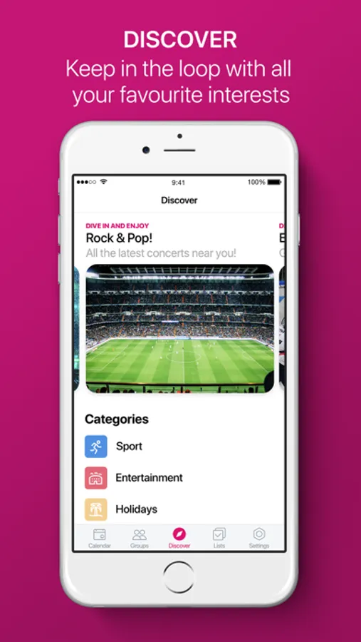 • Interesting calendars: Football matches, Rugby, Holidays and much more! Simply add the events you like to your calendar. Tap on the "Discover" icon in the tab bar and search through great calendars.
