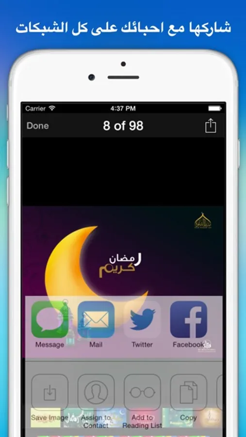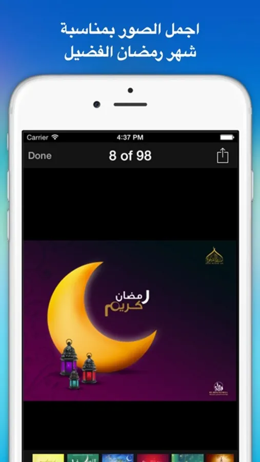 صور رمضان كريم تهاني و ادعية بمناسبة الشهر الكريم يحوي التطبيق اكثر من مئة صورة بامكانك استخدامها ومشاركتها مع من تحب بسهولة