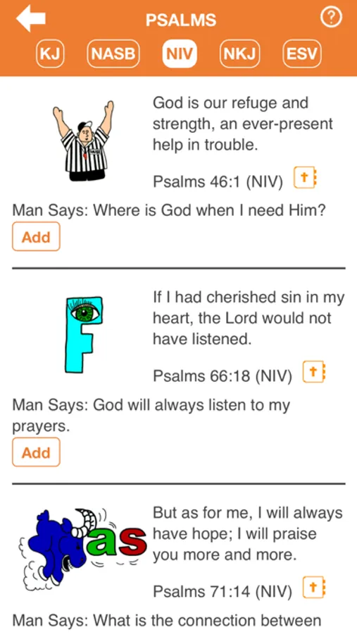 Select from 5 Bible translations: KJ, NKV, NAS, NIV, ESV