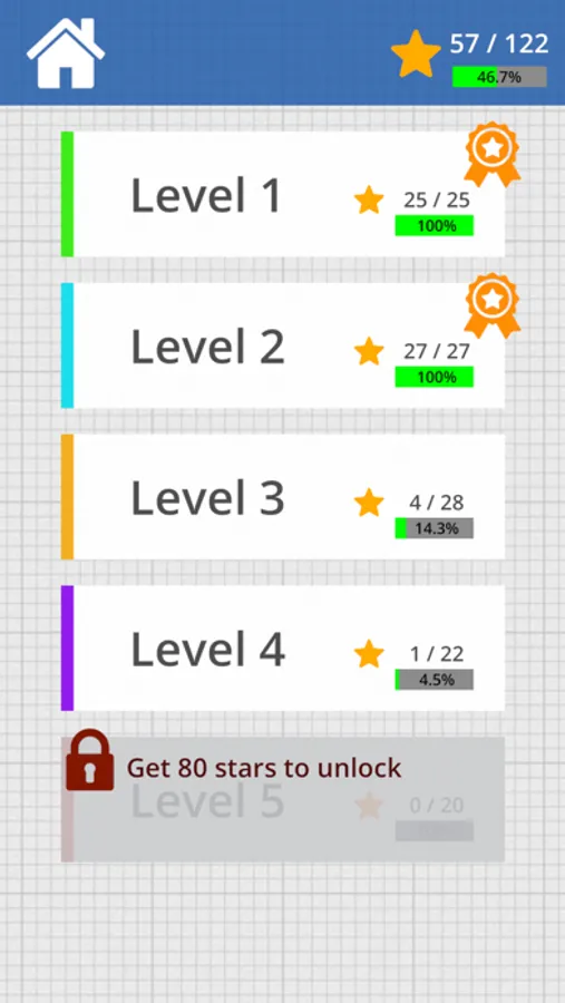 - Levels are released according to the number of questions answered correctly.