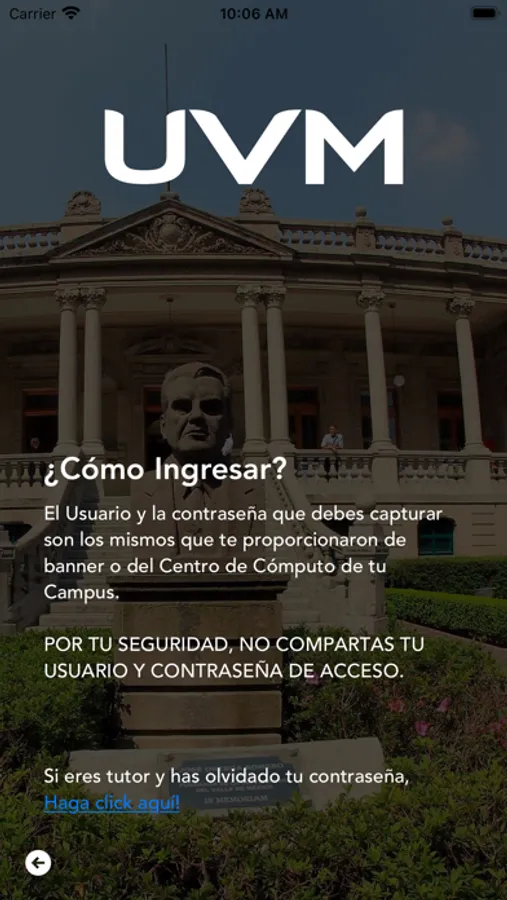 Solución móvil de la UVM que soporta el proceso de toma y consulta de asistencia, así como la consulta de calificaciones en línea de los alumnos en curso; además de proveer un medio de comunicación directa entre la comunidad estudiantil, docente y administrativa a través del envío de notificaciones, encuestas y mensajes.