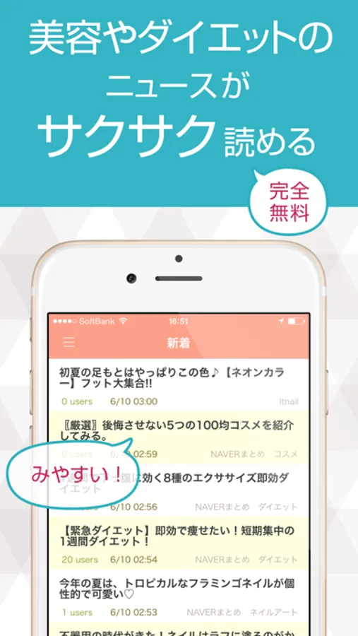 各種メディアニュース/コラム/掲示板など、さまざまなサイトから配信される美容やダイエットに関する話題をまとめてチェックできます。