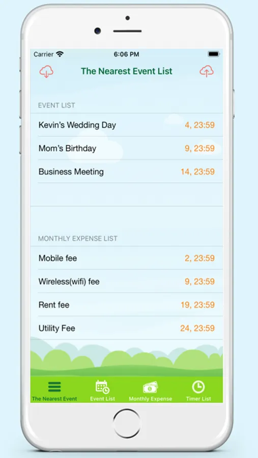 * Show the list of countdown the d-day and monthly expenses in nearest dates