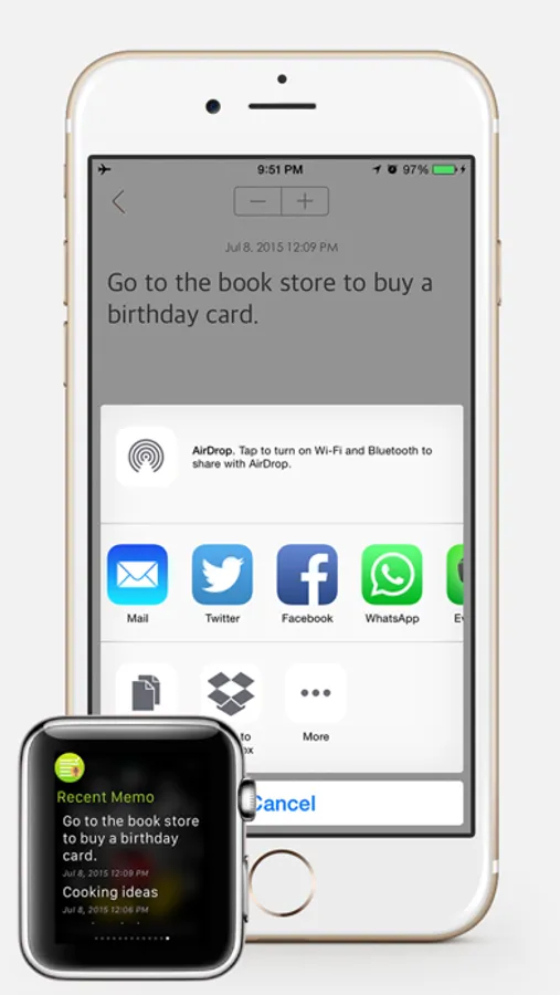 You can write the memo like the shopping list on iPhone and check the memo using Apple Watch during shopping.