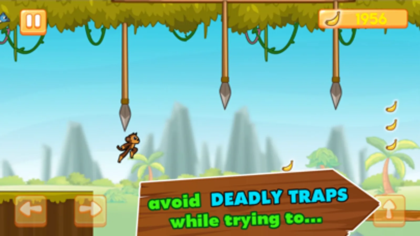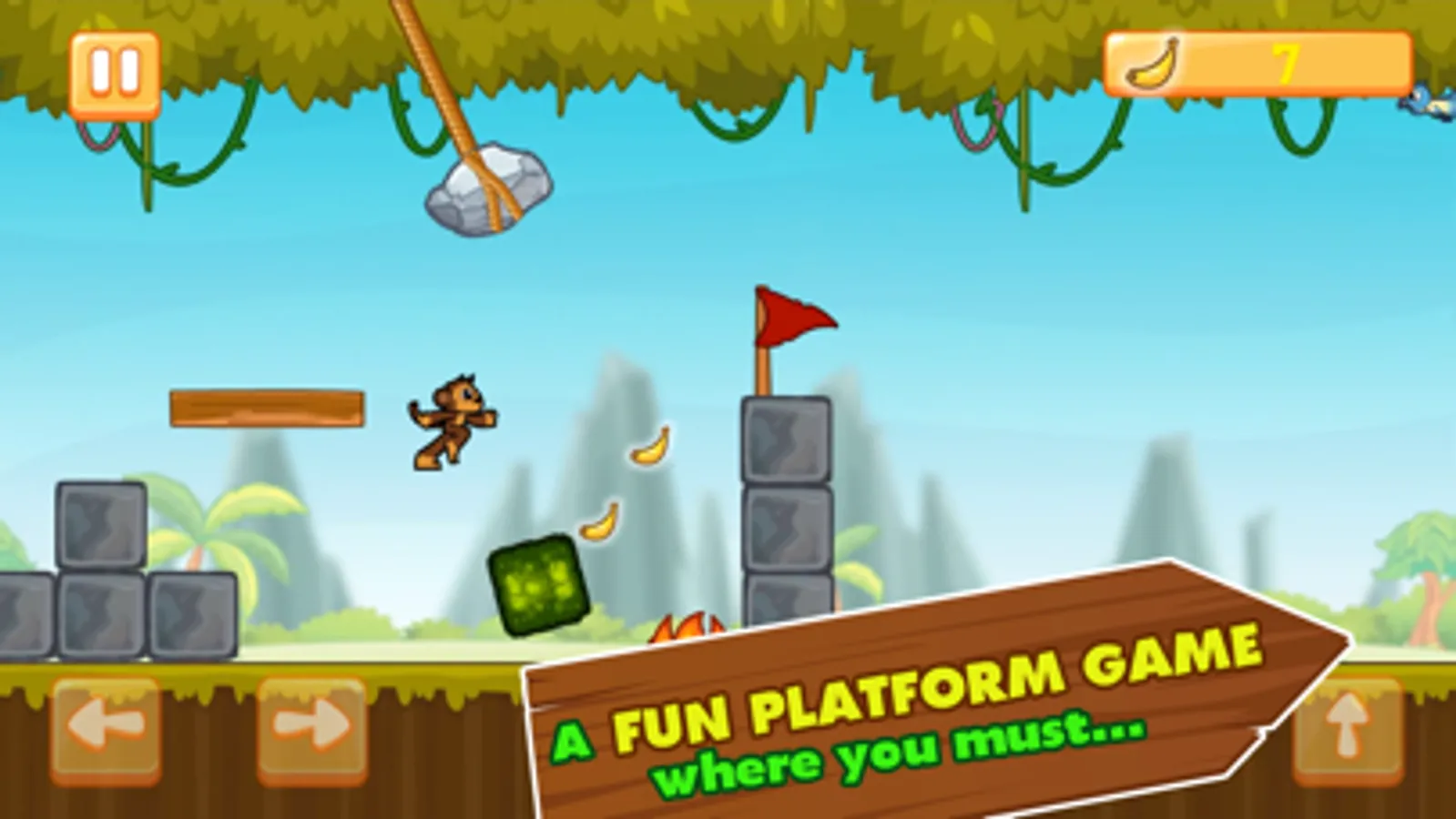 GOAL: Get home to your monkey family. Collect bananas on the way. Avoid all traps and obstacles. That is it!