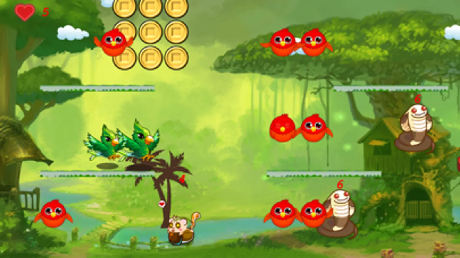 This is a very hot bird that makes people love and hate, control the bird, bring as many birds as possible, don't touch the tree stump, avoid the monsters, the farther the challenge distance, the higher the score, click to start the game