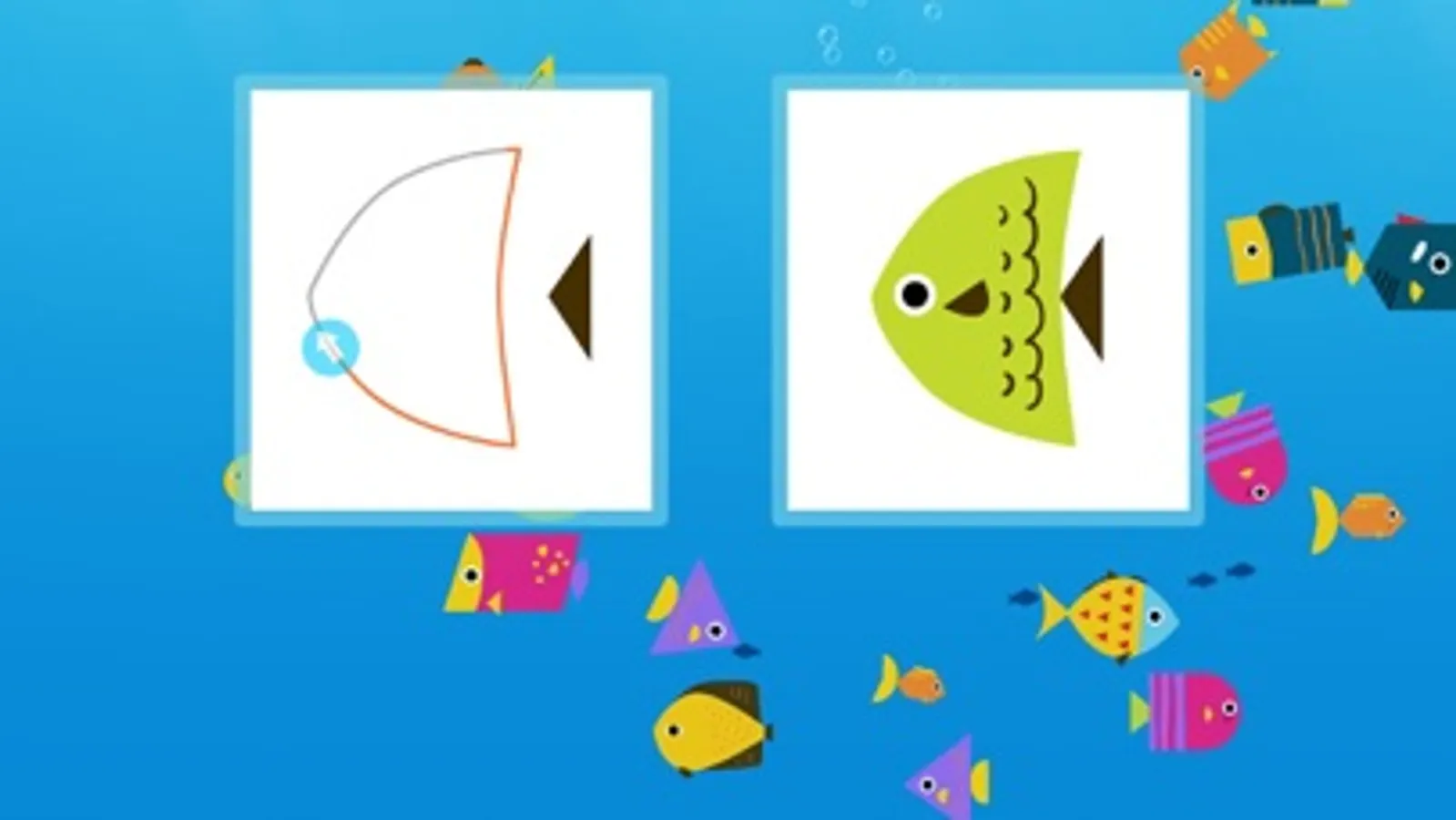 When a shape traced ok, it will become to fun object(such as flower, fish, bug, car, shape man or bird), and kid