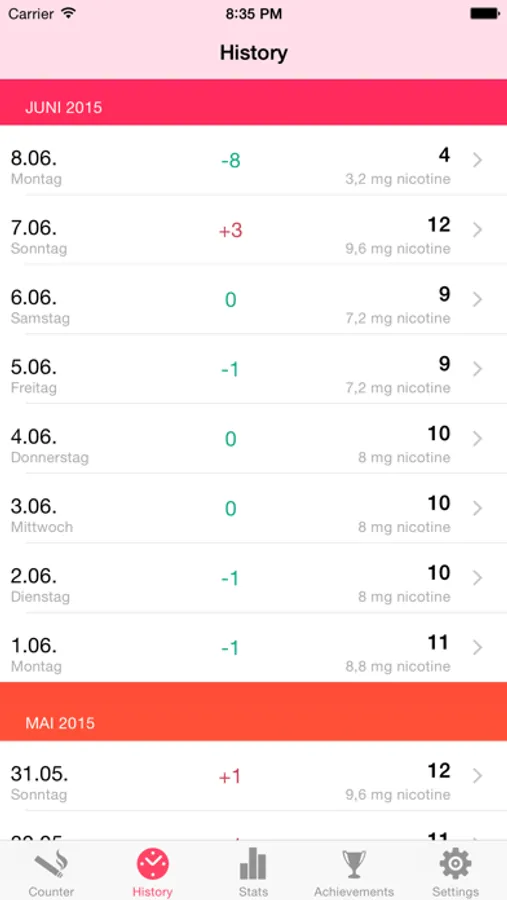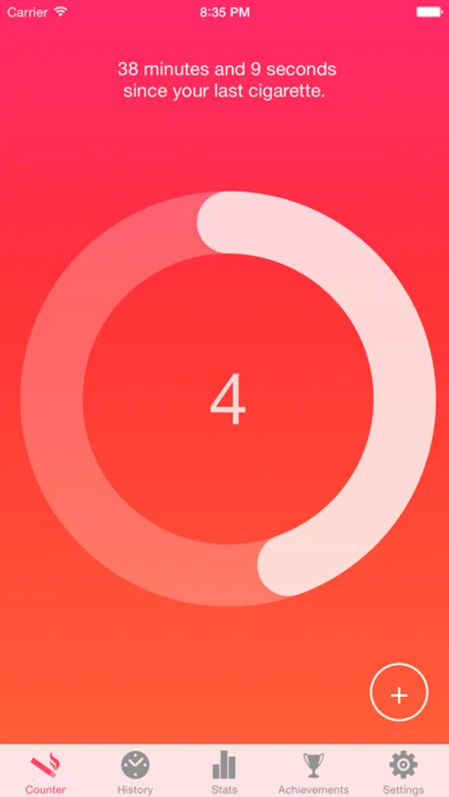 Press the plus button to add a cigarette. Just in case you accidentally pressed the plus button a minus button will appear you can undo the count by pressing it.