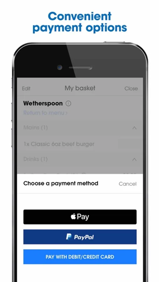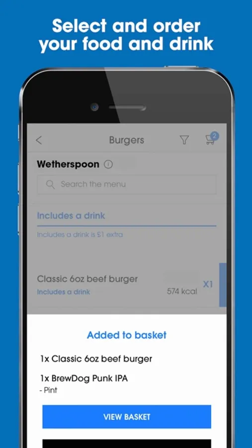 Order food and drinks with the Wetherspoon app, from your phone, and have them delivered to your table.