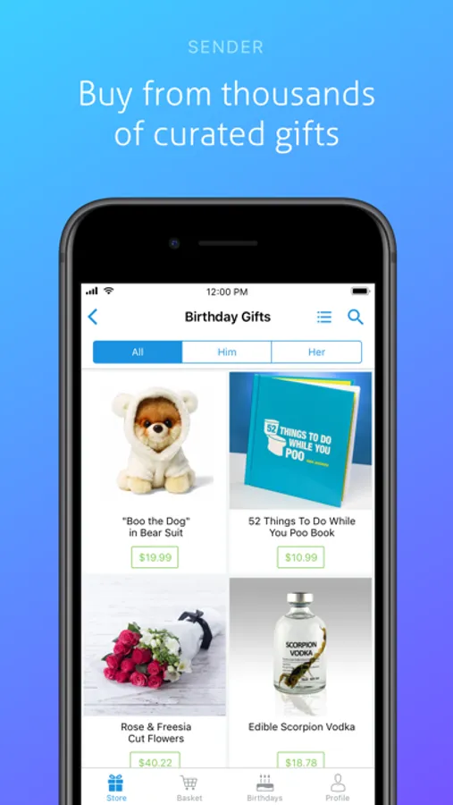 Easily import all birthdays from your phone contacts, or add special occasions manually. SwiftGift will send helpful push notifications so you never miss the important moments in your life, and will even suggest gifts that your Recipient will love!