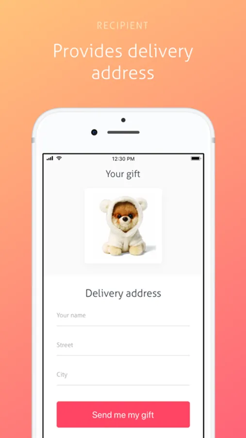 • Recipient sees the virtual gift, and provides their physical delivery address