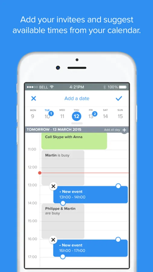 - Add your contacts as invitees and see when they are available