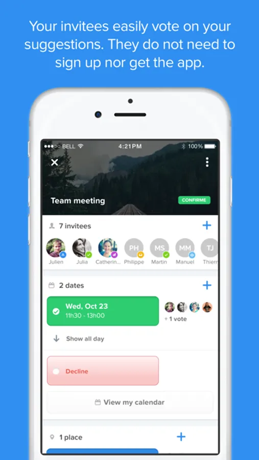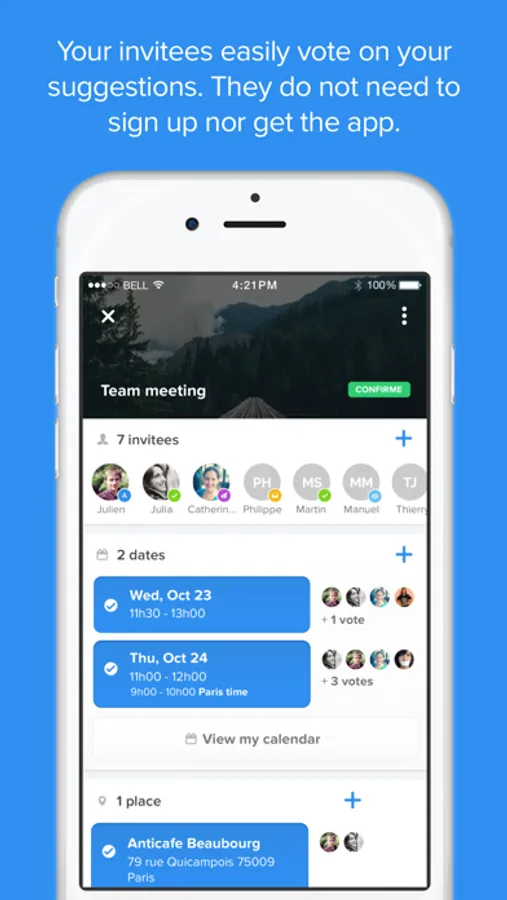 - Your invitees easily vote on your suggestions, from the app or from the web, without having to sign up