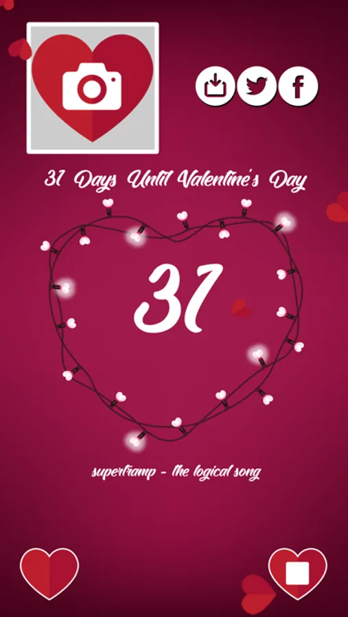 The app shows you have many days they are until Valentine's Day, as well as that the app offer other great features including: