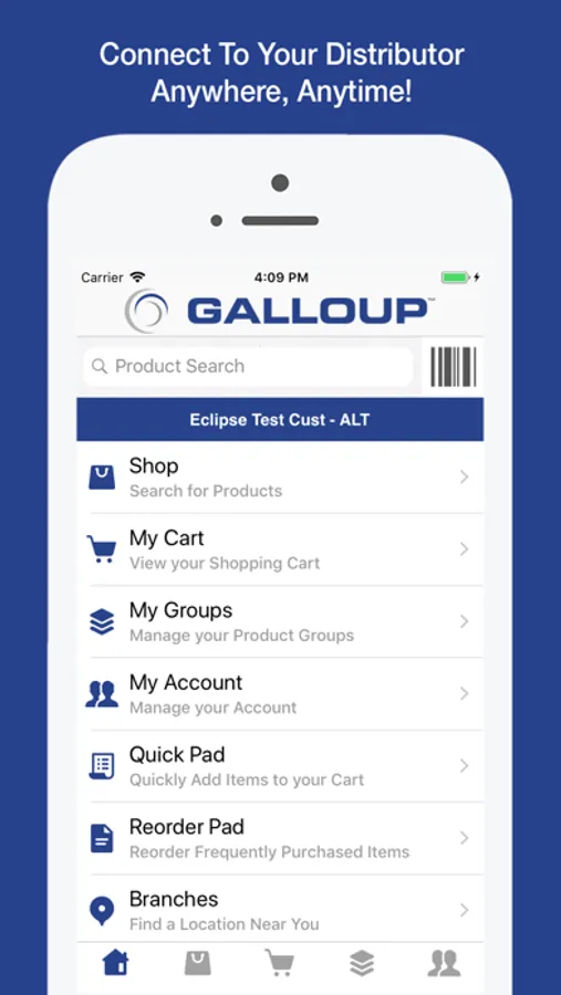 Galloup OE Touch connects you to your distributor anywhere, anytime. Create orders based on realtime pricing and company-wide availability, view your account information, take photos of requested product, and more…