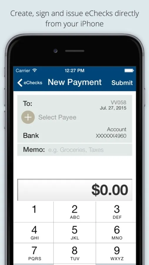 Welcome to the multi-purpose electronic checkbook! Create, sign, and send digital as well as Print+Mail check payments while taking advantage of the latest fraud security technology. The eChecksPro Mobile Checkbook is available as a companion offering to anyone using the eChecksPro. eChecksPro Mobile Checkbook lets you create and maintain a list of Payees with information needed to send either digital or paper check payments. Deluxe Payment Exchange Mobile Checkbook also facilitates creation, approval/sending, and voiding payments from your iOS device wherever you have mobile service or a Wi-Fi signal. You can also view details about eChecks you’ve received. The eChecksPro puts you in control of making payments any time, from any place, to anyone (payees need not be eChecksPro account holders) while saving postage, envelopes, check stock and time.