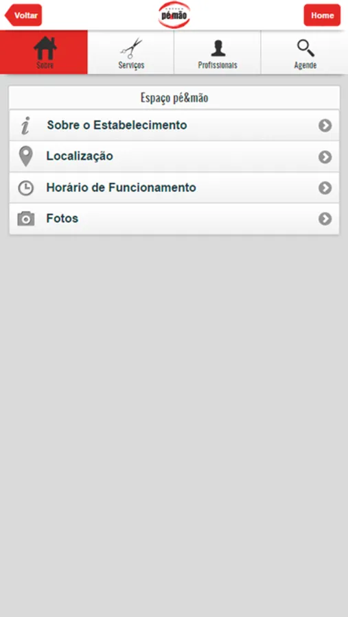 Ao selecionar um estabelecimento, você será direcionado para a página desse estabelecimento. Além de poder marcar uma hora diretamente nessa página, você ainda encontrará diversas informações úteis, como: