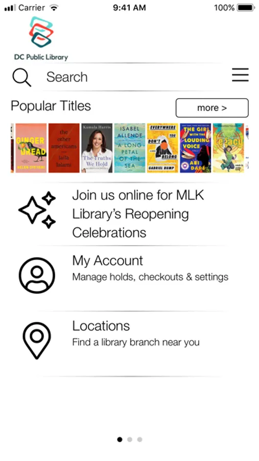 The DC Library app is your portal to enjoying DC Public Library services on your mobile device. With it, you can quickly search library resources, find information and materials and get full access to your library account -- wherever you are!