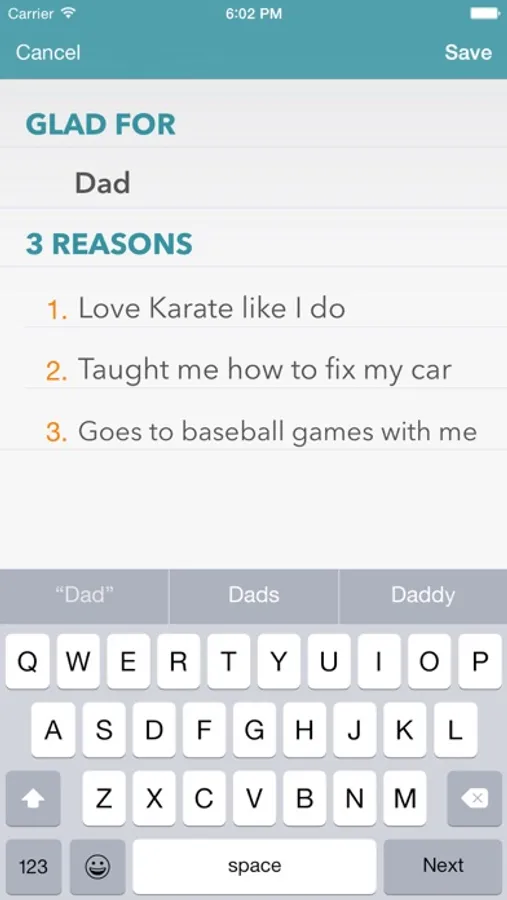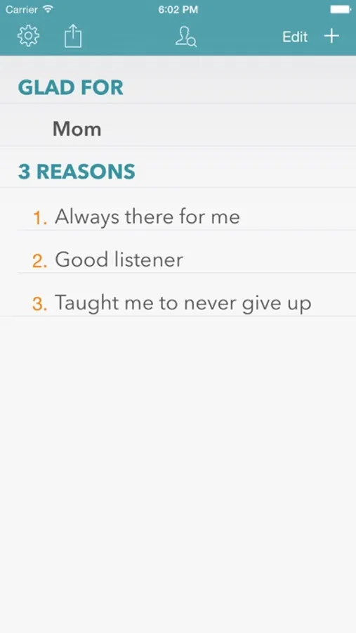 Introducing 3 Reasons for iOS, a sister app to Wants & Thanks. 3 Reasons is a simple and elegant way to express gratitude for the people and things in your life. Enter the name of someone or something you're grateful for and up to 3 reasons you appreciate them. Keep it private or send your list to that person as an image, text, or PDF. Sharing options include social media like twitter and Facebook, email, and text.