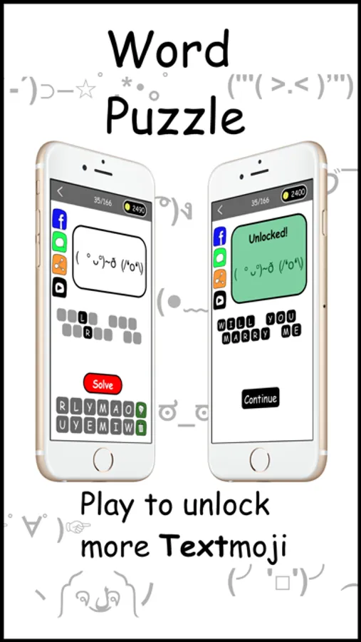(=^ェ^=) Play the fun word puzzle inside the app to unlock more Textmoji for FREE!