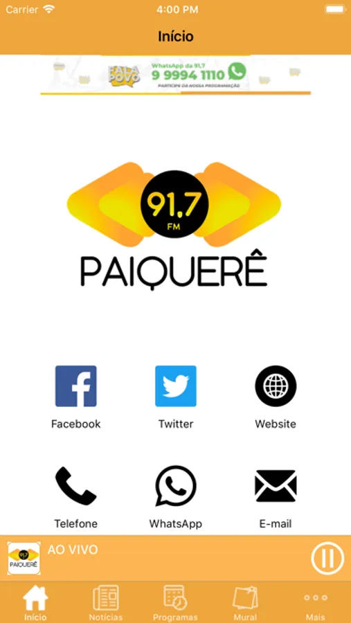 - Ouvir a programação da Rádio ao vivo