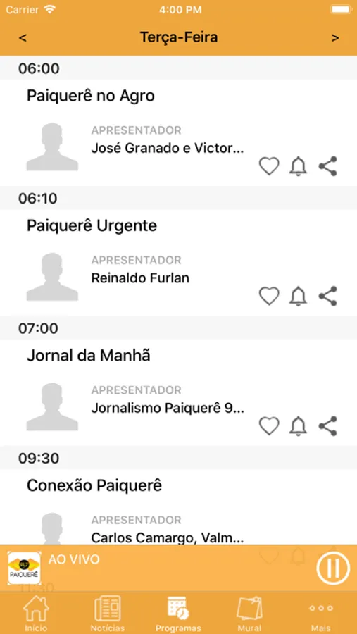 - Favoritar seus programas favoritos