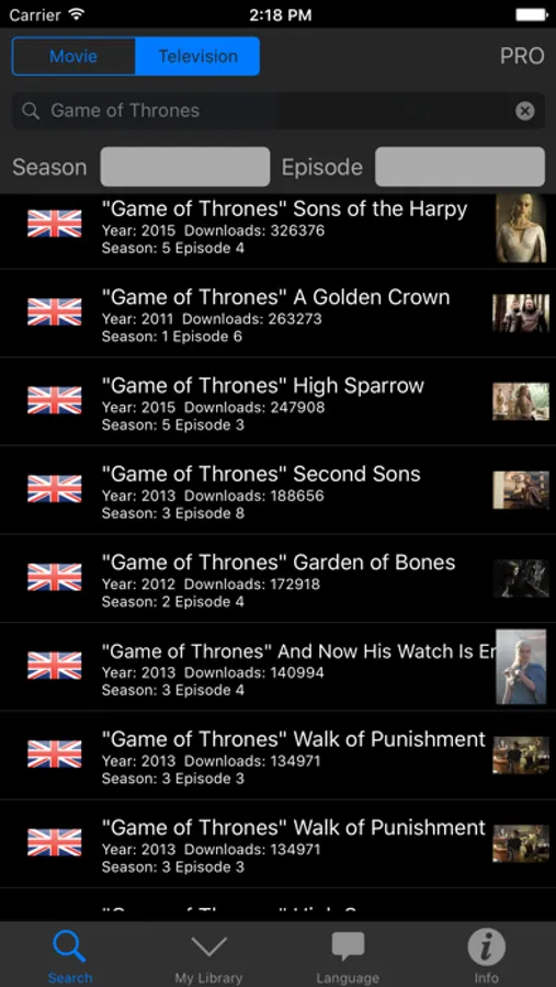 PRO version will never have any restrictions and will give you full access to download unlimited subtitles from Open Subtitles and subtitles(srt files) from your own Dropbox account or the Files app.