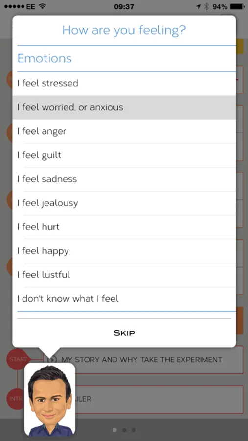 In the App, your personal Avatar also asks you how you are feeling in that moment, e.g. Are you feeling stressed? Are you feeling tired? Are you feeling angry? And then based on your response, the app finds short exercises and suggestions to suit your mood, to help you come back to a place of peace and calm