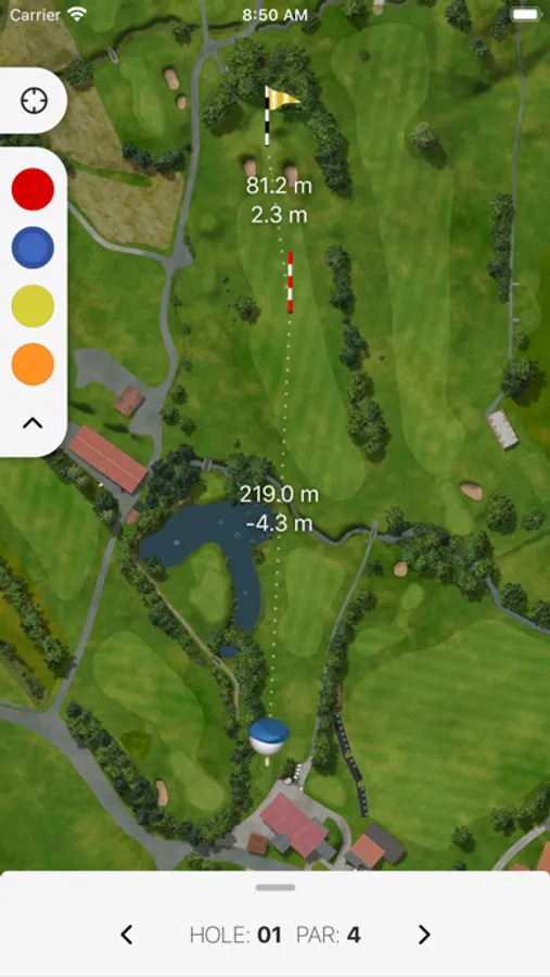 Blick an die Richtung von Ihrem aktuellen Standort zum Golfplatz mit dem Routenplaner.