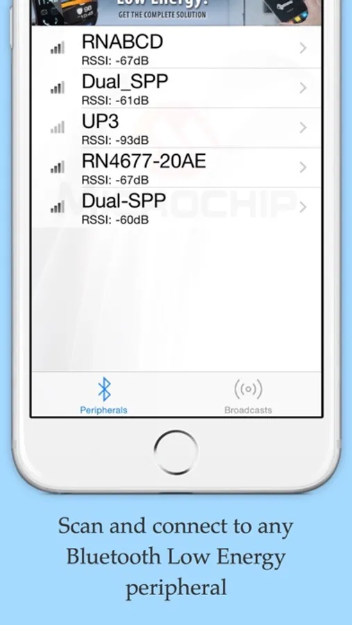 Microchip’s SmartDiscover provides the ability to scan and connect to nearby Microchip Bluetooth Low Energy (BLE) peripherals and listen to BLE broadcasters. Once connected to a BLE peripheral, the user can discover all the services and characteristics that are enabled in the peripheral. It lets the user read, write or enable notifications as appropriate for the discovered characteristics. The standard advertising data types included in the advertisement data of the discovered BLE broadcasters can also be checked.