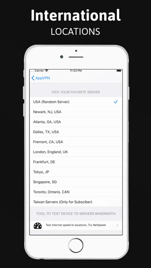 - AppVPN uses reliable servers located in USA, United Kingdom, Germany, Japan, Canada, Taiwan, Hong Kong, Singapore, Brazil, Russia, India, Australia, Turkey, Israel, Luxembourg, France, South Korea, South Africa and Mexico