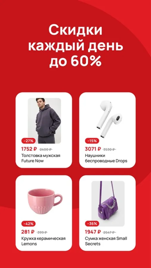 Максимальный контроль поставщиков, служба поддержки рассматривает каждое обращение. Покупайте брендовые вещи с максимальной экономией.