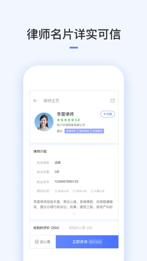 【电话咨询】直接和律师取得电话联系,更及时,更直接,更快地解决您的问题。电话接通方式为平台转接方式,用户接听不会产生任何的电话费用,平台全程监控通话过程,让咨询服务更有保障。