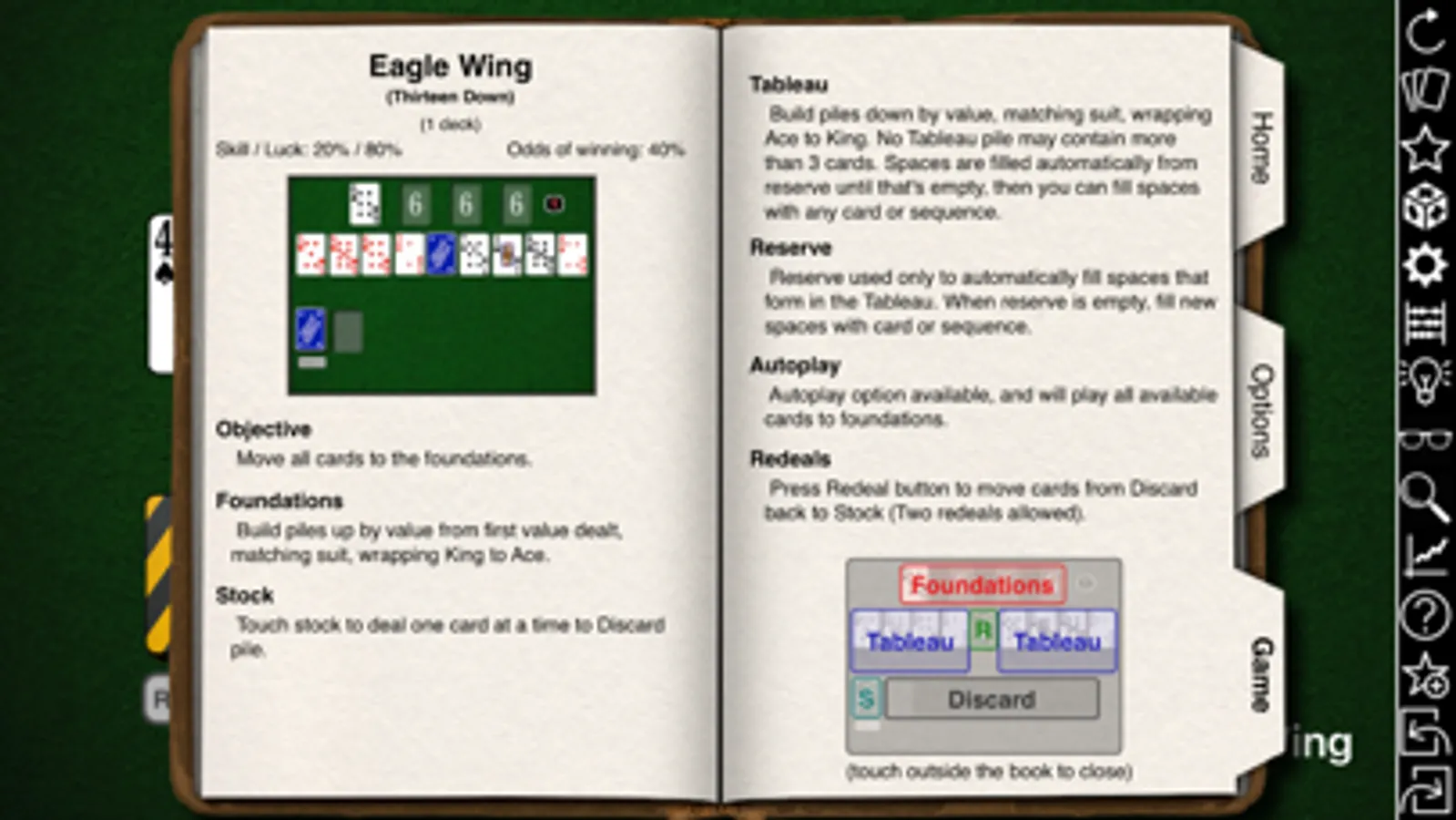For every game, a full comprehensive guide is available on how to play it, and you can get hints to suggest possible moves that may have been missed. Bookmarks can be set to tag your favourite games and play them again quickly, and Undo and Redo are always available.