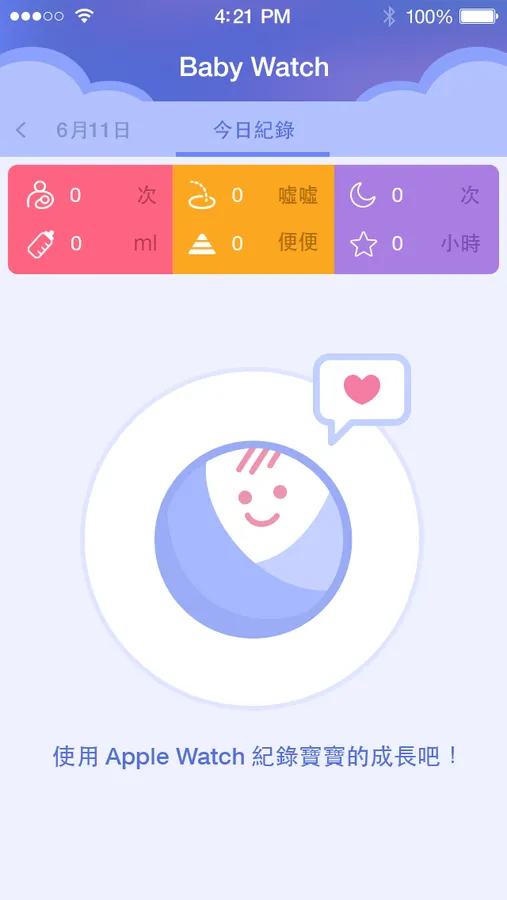 Baby Watch 能幫助媽咪爸比輕鬆方便的完成寶寶生活紀錄,搭配 Apple Watch的貼身提醒,讓您更了解小寶貝的成長狀況。透過每日的紀錄,在細心照料的同時,彷彿擁有一位私人小助理。Baby Watch 將隨時掌握寶寶的點點滴滴,陪伴新手爸媽走過與寶寶的育兒路。