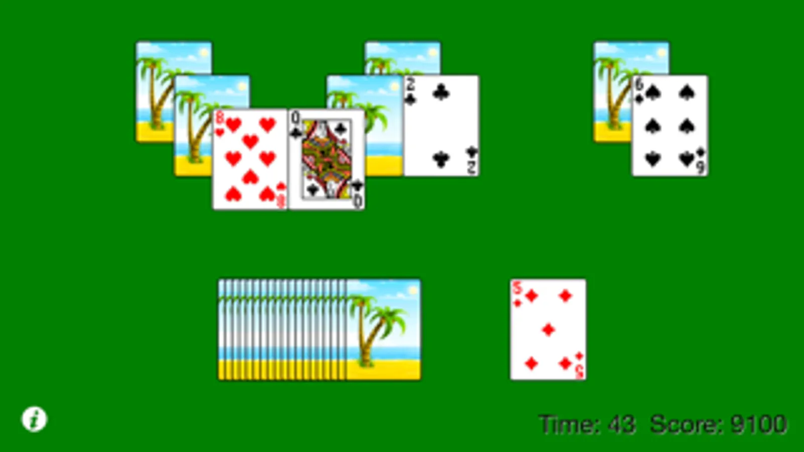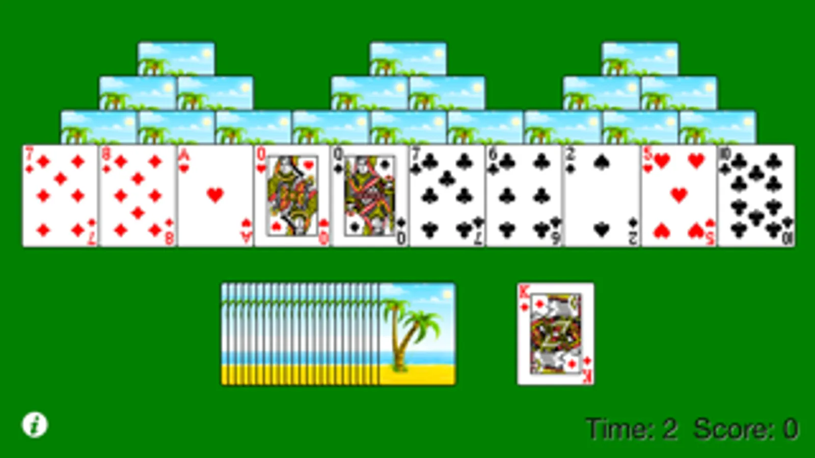 The game starts with eighteen cards dealt face-down on the tableau to form three pyramids with three overlapping tiers each. Over these three pyramids are ten face-up cards.