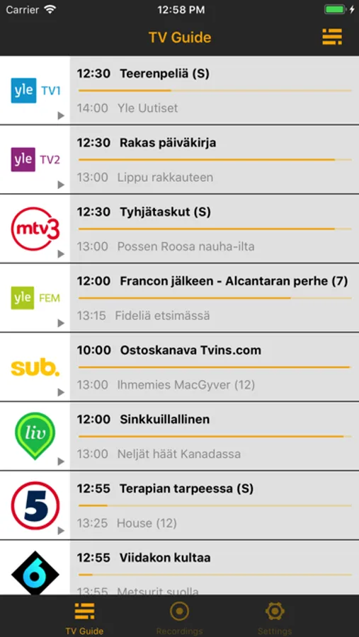 Maxivision Viihde gives you a full TV experience on your mobile devices. Browse the Electronic Program Guide (EPG), watch live TV channels and record your favorite movies and series to be watched wherever you are. Start Over- functionality allows you to start the ongoing program from the beginning, so you will never miss a minute of your favorite shows. If you have Maxivision Viihde set-top-box, you can also view your recordings on your living room TV with perfect picture quality. Signals adapt to your broadband speed so the App will also work great with lower bitrates.