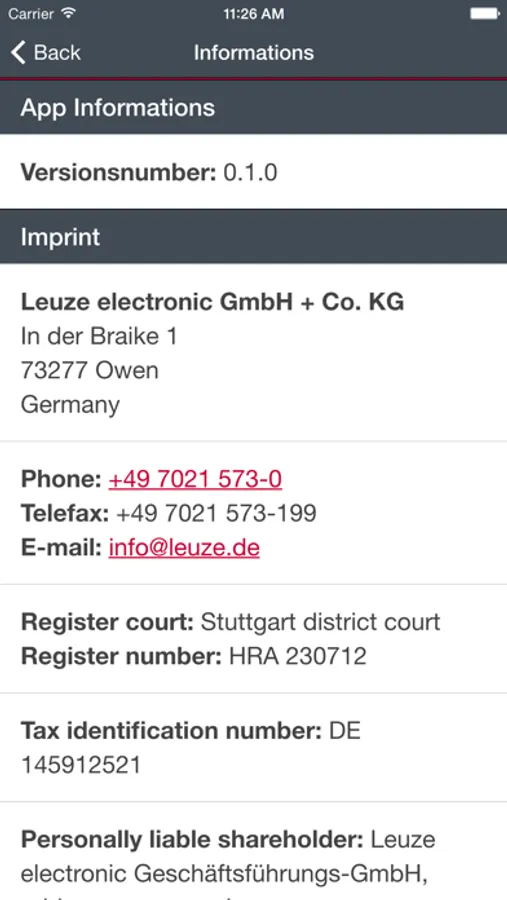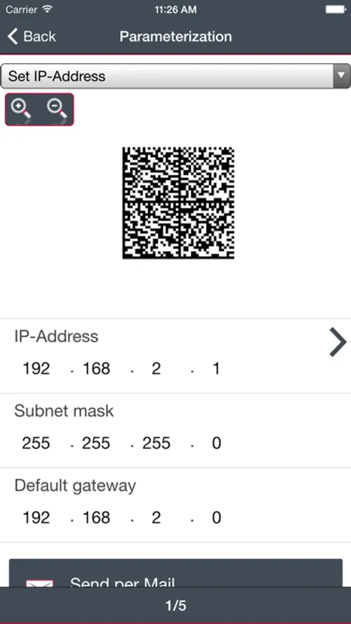 The application generates 2D codes that can be used to parameterize the camera. If a network connection is established, additional functions are available (process image, statistics, parameter download).