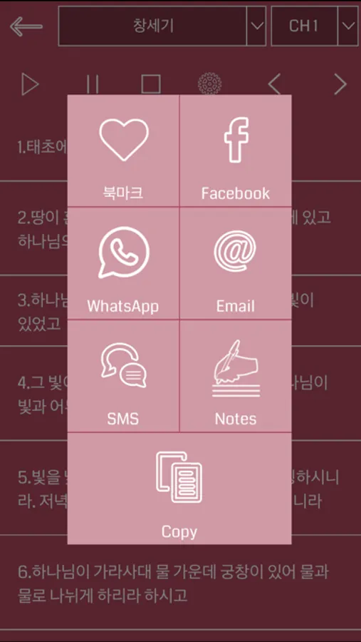 -Support for sharing the bible in social media (Facebook, Twitter, Whatsapp)