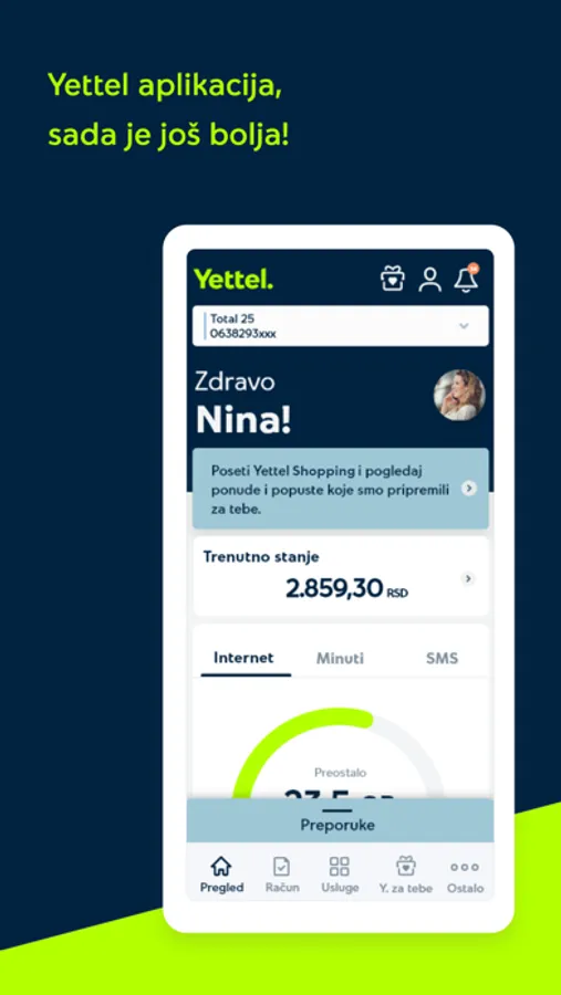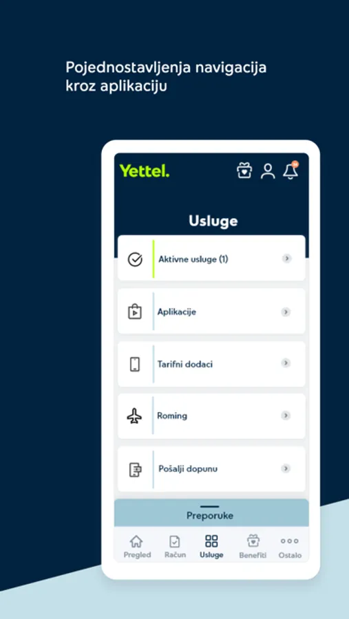 • Pristupi aplikacijama Yettel Shopping i Yettel Zelene staze