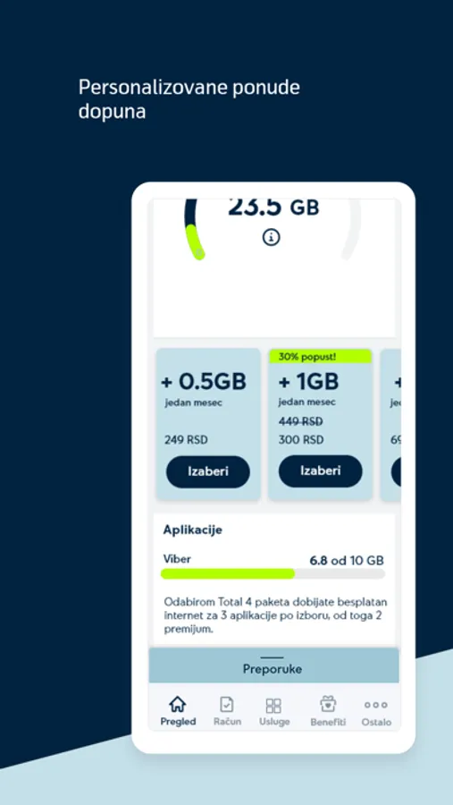 • Proveri stanje računa i potrošnje aktivnih usluga i dodataka