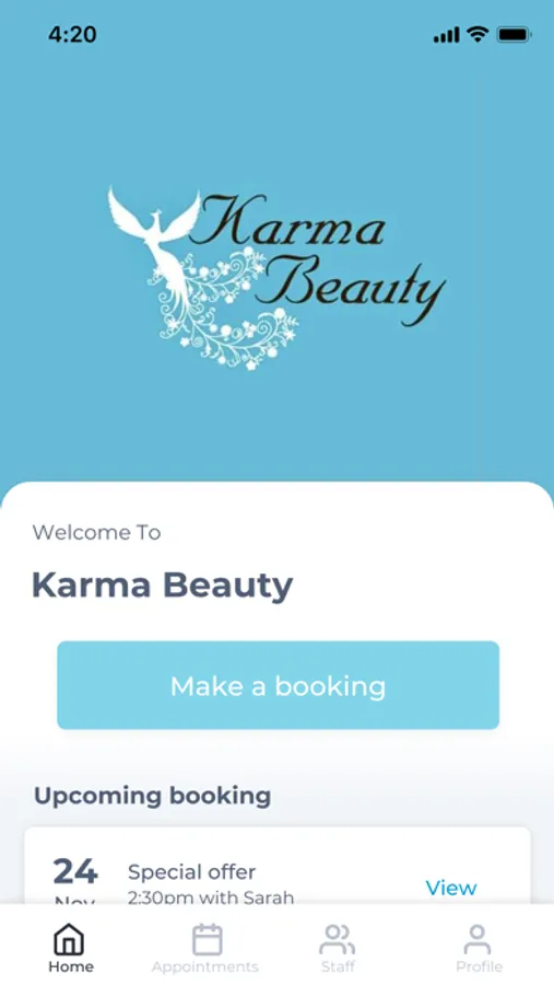 The Karma Beauty app makes booking your appointments and managing your loyalty points even easier. You're just a few taps away from feeling good and looking great!