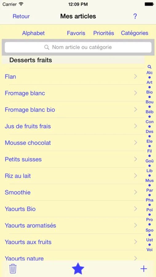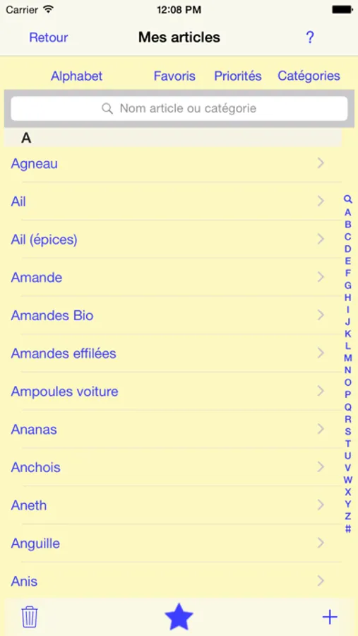 - cette liste s'adapte au magasin dans lequel vous êtes et ne vous présente que les articles vendus dans ce magasin.