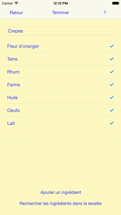 - vos listes-type et vos recettes. Les ingrédients sont facilement ajoutés à votre liste