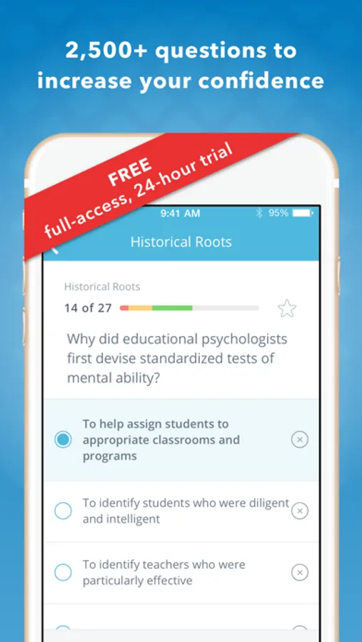 Install the free version today and jumpstart your studying! We have provided a limited free version of the content that you can try before deciding to upgrade. This version includes a limited amount of practice questions and basic progress metrics.