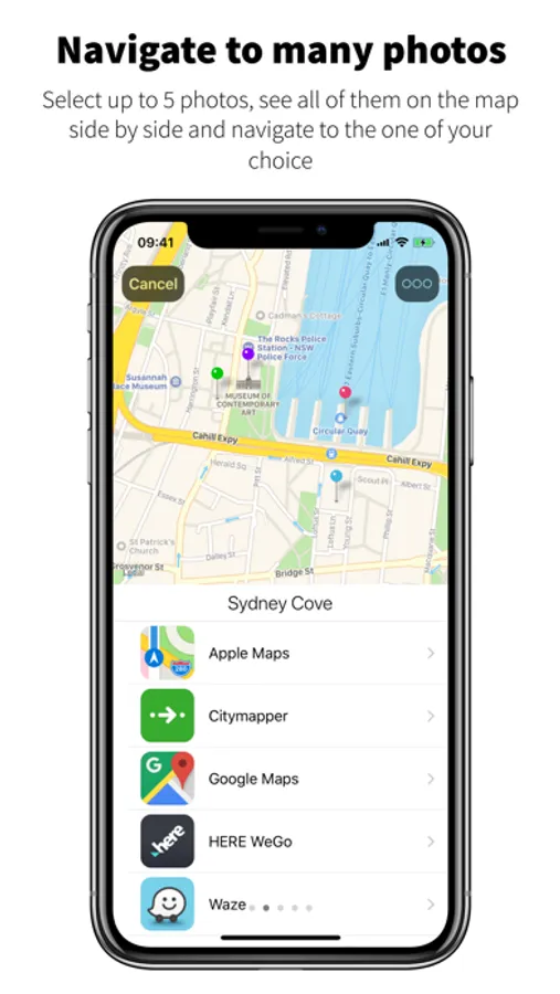 - Select up to 5 photos, see all of them on the map simultaneously and navigate to the one of your choice.