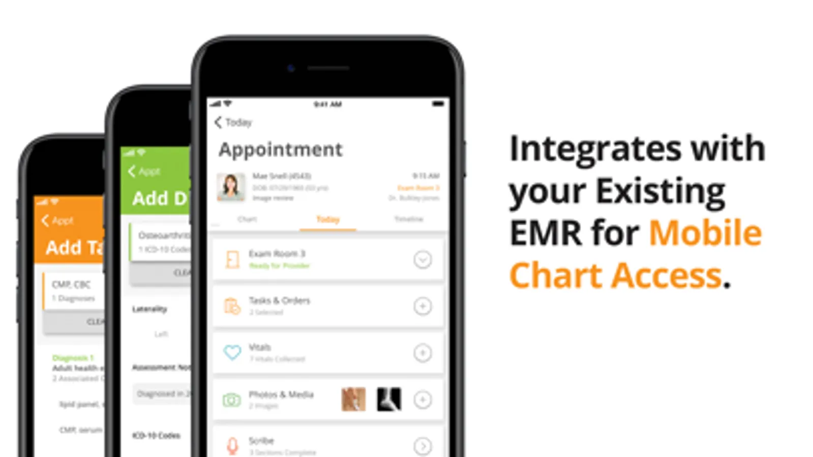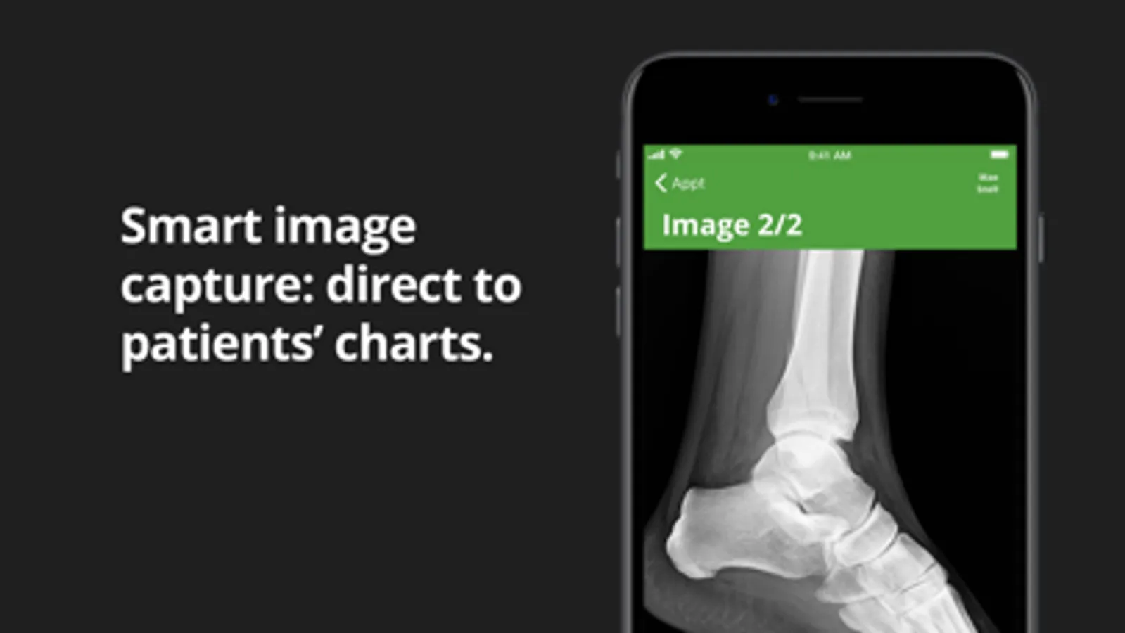 Instant and Automatic Charting: The advent of dynamic, mobile charting takes clinical documentation to a new level. With Mobius, just use your phone to snap any number of high-res photos that are instantly uploaded to your EMR and stored safely. In the same way, a single tap on your mobile device can update demographics, allergies, medications, medical history, and the rest of the patient chart. Mobius also links any PACS directly to your EMR so you can quickly save those images as well.