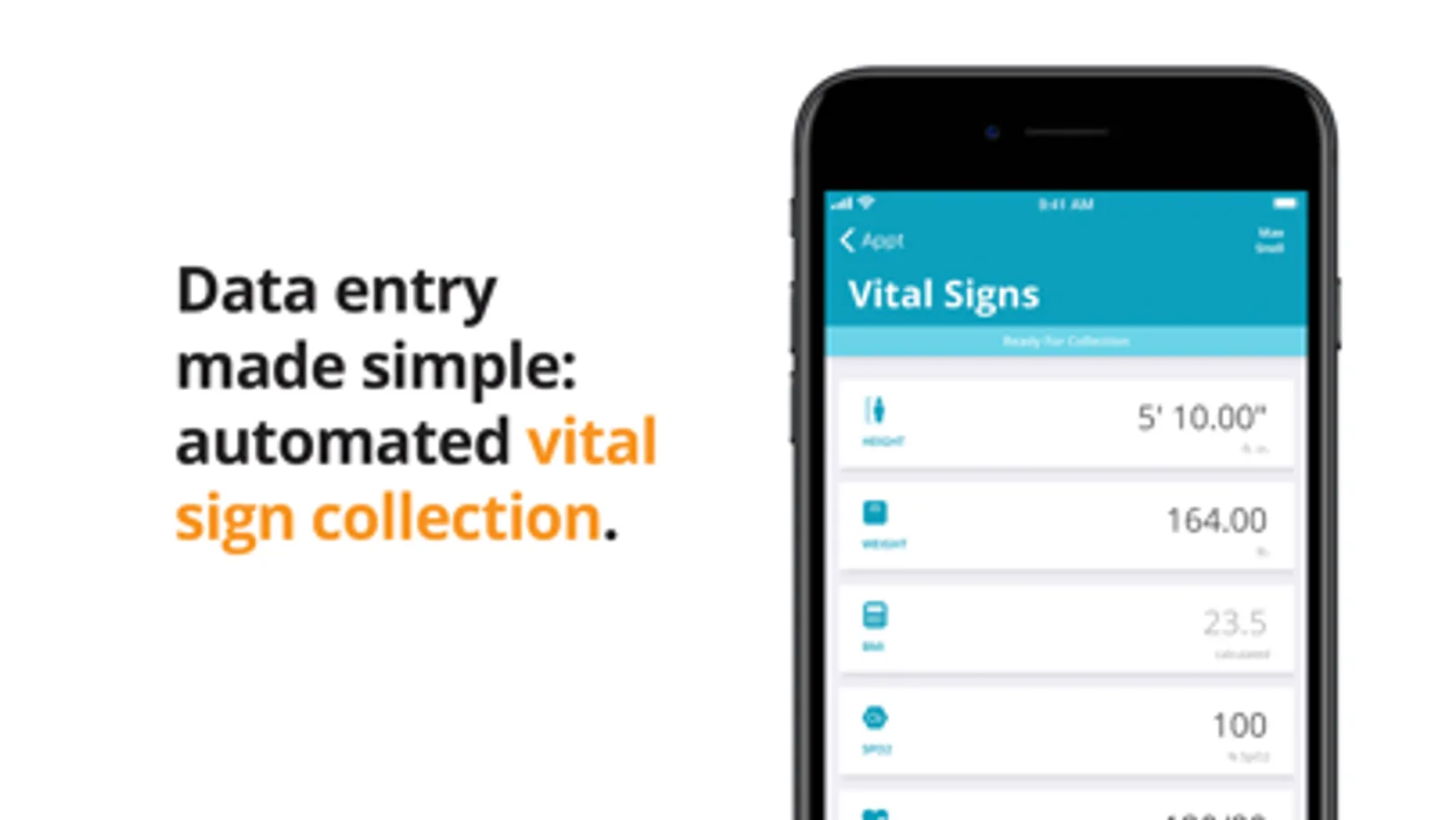 Instant Vital Sign Collection: In fewer than 45 seconds, Mobius Clinic automatically collects a complete set of vitals from every patient using Bluetooth®- medical devices. Data include measurements for blood pressure, heart rate, temperature, oxygen saturation, weight, glucometry and more.