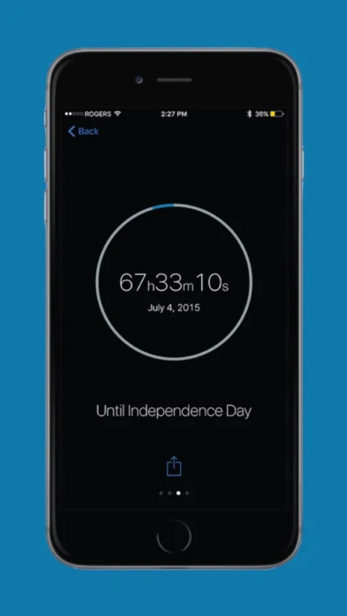 - Sharable Content: Easily E-mail, Text, or Tweet the time left to an event by tapping the Share icon.