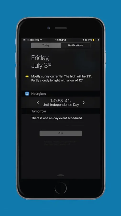 - Notification Center Widget: Instead of having to open Hourglass, just swipe down to view your Countdowns in the Notification Centre.